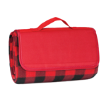1200mm x 1370mm woven polyester fleece picnic blanket with a water-resistant PE backing. It folds up after use with a Velcro closure and has a handy carry handle.